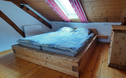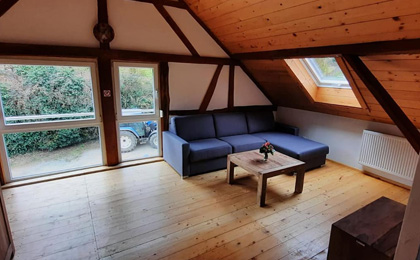Das Heuhotel wurde umgebaut in eine wunderschöne, helle Ferienwohnung im Landhausstil, in der bis zu 8 Personen reichlich Platz und Geborgenheit finden!